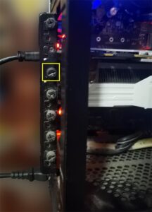 忘记了我是怎样决定再开机一次的,但是这回我把侧板的螺丝钉给拧上了,就是图片里的这颗,令人难以置信的是,屏幕上竟然显示出了画面……随后就正常地进入了系统。