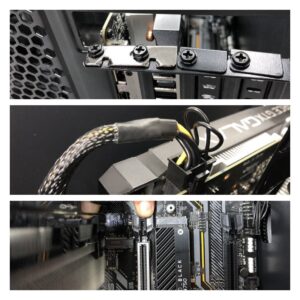 马后炮地回想,这枚螺丝或许支撑起了显卡,让显卡不再单独依赖金手指卡槽的力量挂在半空,改变了金手指接触的姿态。但问题在于我曾将机箱平躺于地上,照理来说也是稳稳当当、规规矩矩的,它真的有这样重要吗?亦或是与静电相关?其实我认为只是虔诚到位罢了。