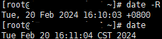 使用date或date -R查看服务器系统时间,对照标准时间,确有出入。