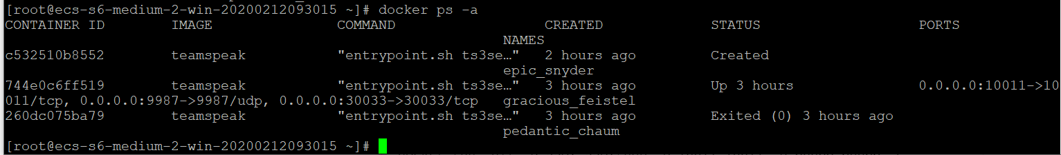 找到对应的teamspeak,拷贝对应CONTAINERID