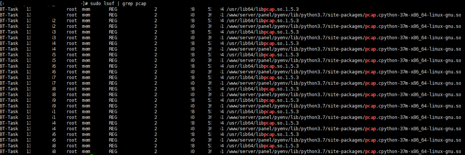 经过调查,发现BT-Task进程下的libpcap.so有嫌疑,于是将相关文件一并移至回收站(可能有误杀请谨慎),文件如下: