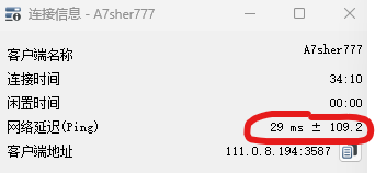 测试二:观察各个用户端的连接信息,发现网络延迟时常出现异常波动,判断卡顿现象发生于所有人,问题与TS服务器相关。